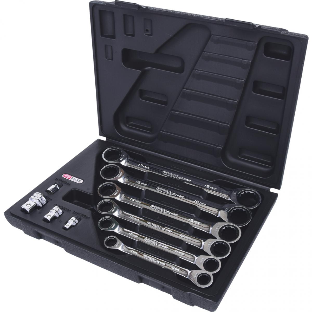 Комплект двусторонних комбинированных ключей с трещоткой GEARplus, 10 шт., 8-19 мм