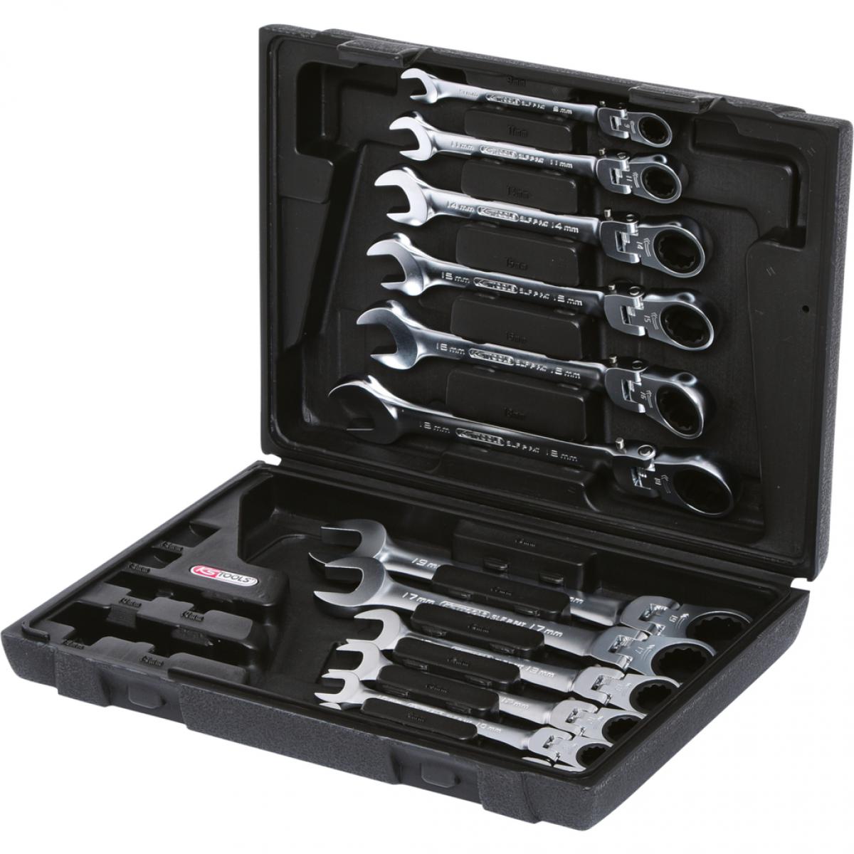 Комплект шарнирных комбинированных ключей с трещоткой GEARplus, 12 шт., регулируемых