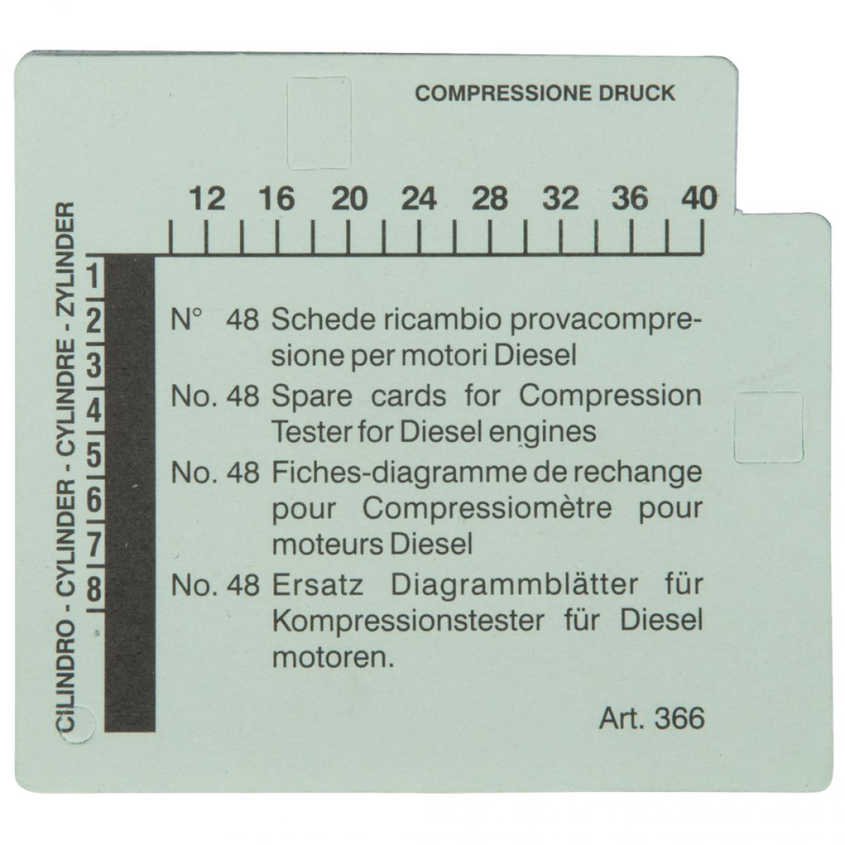 картодиаграмма прибора проверки компрессионного давления для дизельных двигателей (упаковочных единиц - 48)